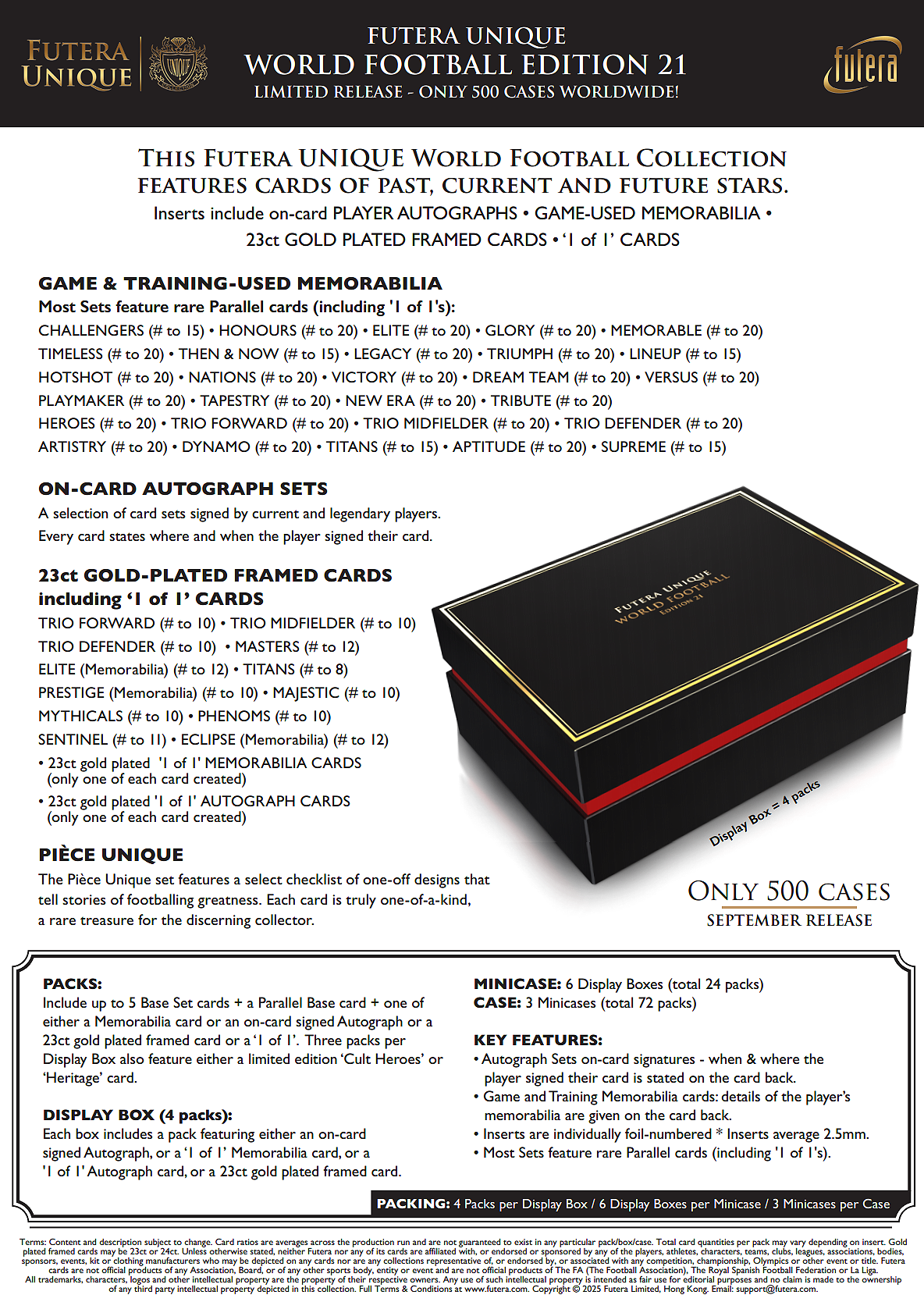 品名:【FUTERA】{足球} 2025 World Football Unique Edition 21 伏特拉 珍貴21版 足球球員卡 (1盒)