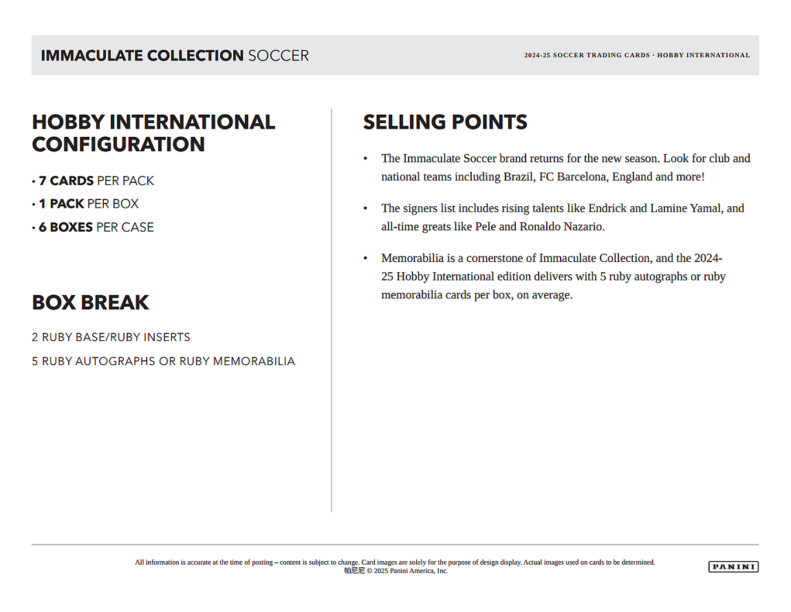 2024-25 Panini Immaculate Collection Soccer Hobby International![]() ![]() ![]() ![]() |